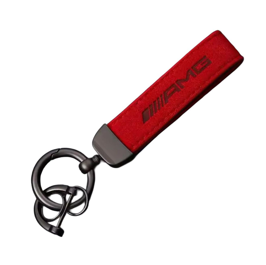 Ein Statement in Stil und Performance – der AMG Schlüsselanhänger aus rotem Wildleder vereint sportliche Ästhetik mit exklusivem Material.