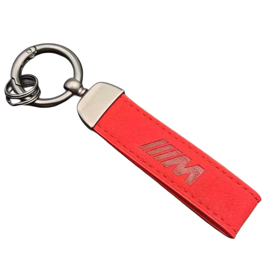 Sportlichkeit trifft Stil – der Schlüsselanhänger aus rotem Wildleder für BMW M ist ein edles Statement für alle, die M-Performance nicht nur fahren, sondern leben.